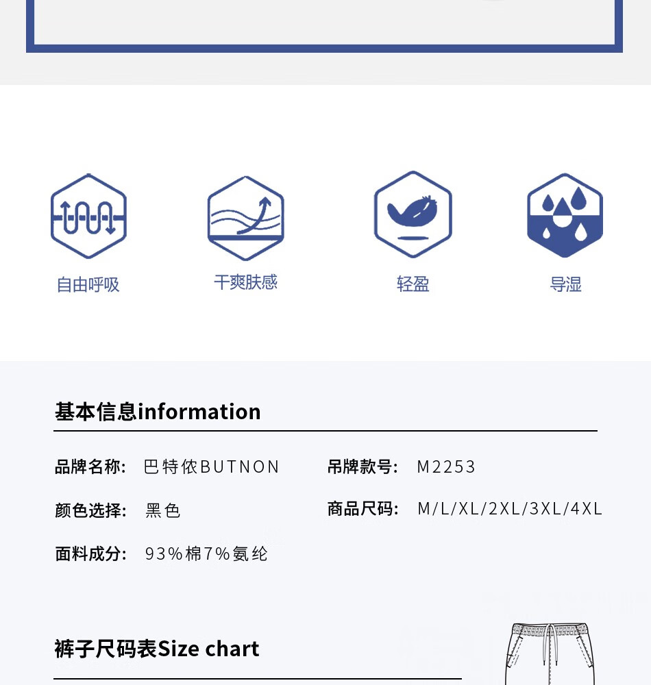 巴特侬(butnon) 巴特侬butnon男女士2022新款运动长裤针织棉 M2253/W2254-黑色