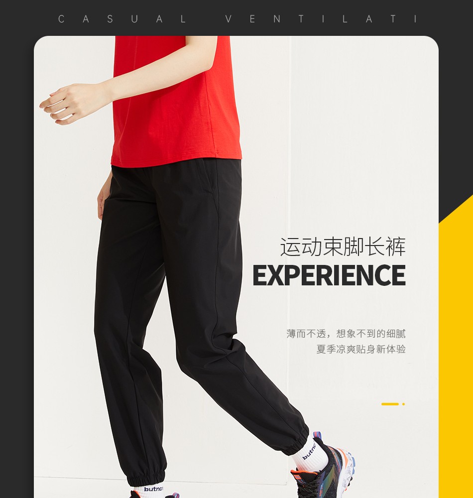 巴特侬butnon女士2022新款休闲运动长裤凉爽束脚 W2248-黑色